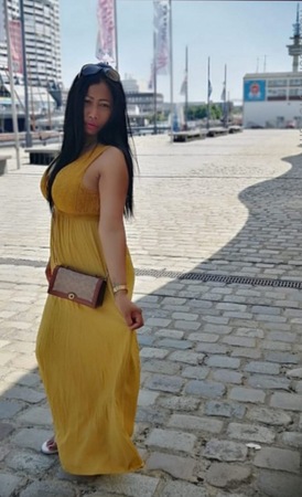 Joy ist 1,70 m groß, trägt KF 36 und