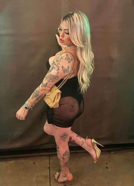 Ich bin eine blonde Transfrau, komplett tätowiert und biete Eleganz, Charme und alles, was du dir wünschst!